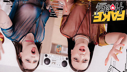 Faux Hostel - Rave Dolls Damsel Gang and Taylee Dinky party their humungous funbags off in immense meatpipe threeway