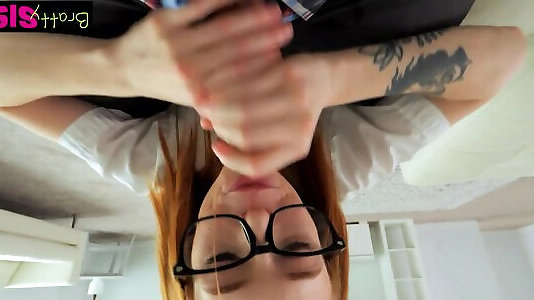 Ginger bore in glasses visits her stepbrother for a quickie