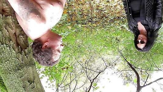 Gimp of a pornstar, outdoor penetrating, strong face slapping