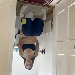 Anal Invasion internal ejaculation with pissing in rest room cup