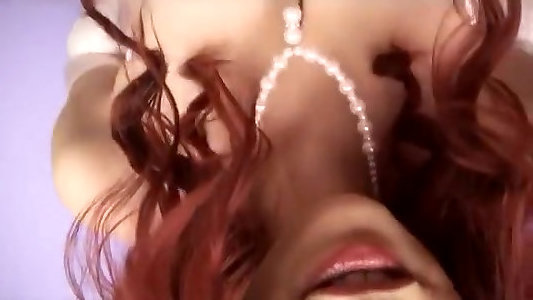 Impressive auburn topless female Amber Jayne is busy with masturbating a fuck stick