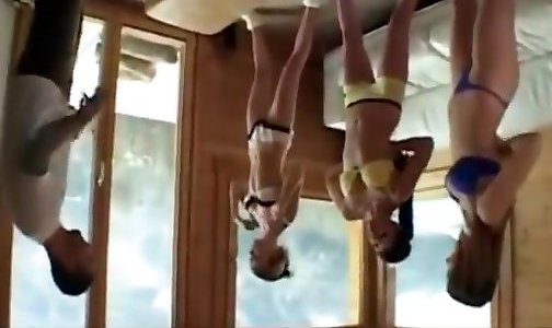 Stripped To The Waist school teenies in gang dancing