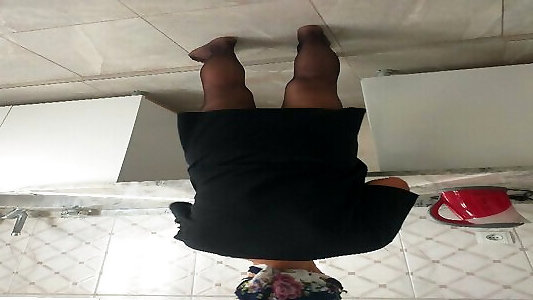 Sexy legs in nylons while my stepmom makes stuffed in the kitchen