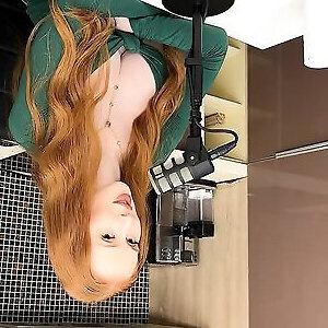 ugly mature girl using a plumb machine