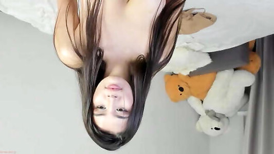 Chinese ultra-cutie is squashing and shakign her large titties