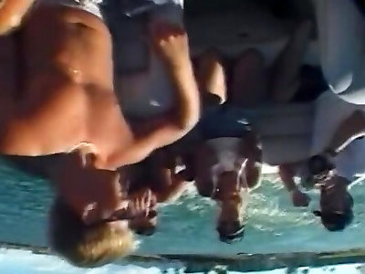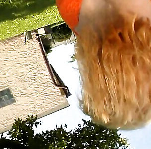 Old Guy Gets His Stiff Penis Deep-throated By Towheaded Milf On His Pool Deck
