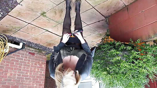 Slutty mother-in-law spreads her legs wide to pee in a public park