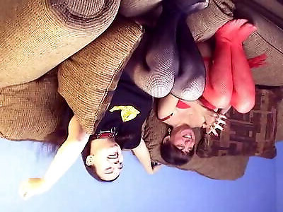 Blonde and Brunette Eighteen Yo&039;s In White and Tan Pantyhose Being Playful