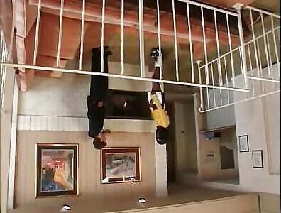 Magnificent dark-hued biotch drains elder white dick and gobbles his nads