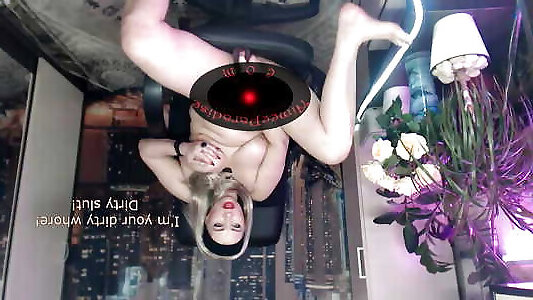 my whore wife bonks her sex-toy and splashing all over her couch whilst on livecam