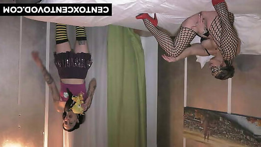 2 dark-hued nymphs are tearing up with monstrous white salami