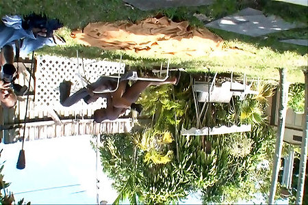 Babe flashing firm milk cans trim pussy retro nylon on picnic