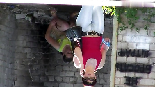 Babe flashing firm milk cans trim pussy retro nylon on picnic