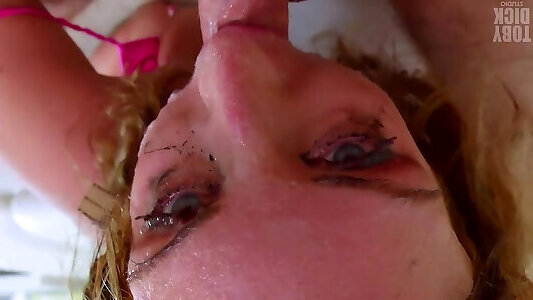 A chubby German female gets her thirsty mouth filled with warm cum