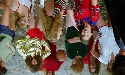 Four dissolute bitches and three horny guys ravage in group fucky-fucky orgy