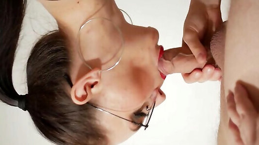 Sinewy enormous manstick bjed by a rigorous chick in chubby glasses