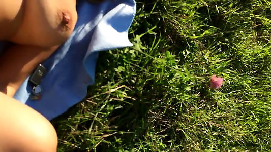 Babe flashing firm milk cans trim pussy retro nylon on picnic