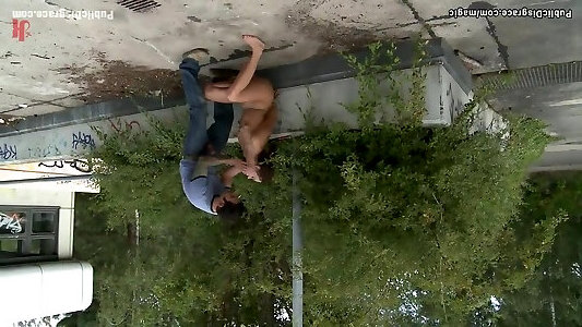 Subtitled bizarre Japanese half nude caregiver outdoors