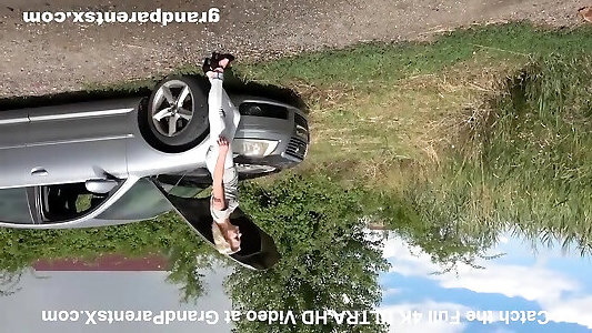 Babe flashing firm milk cans trim pussy retro nylon on picnic