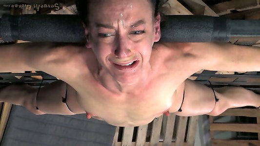 Black guy makes submissive roped up dark haired inhale his gigantic Bbc