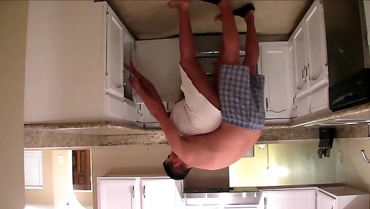 Huge-breasted German girls gets fucked by two dude's in the kitchen