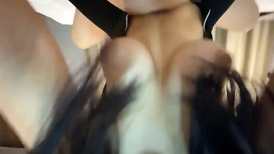 Chinese wife shows her big boobies and plays with husbands meat in POV