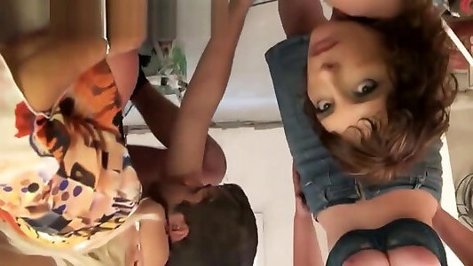 Cheeky CFNM schoolgirls dicksucking outdoors