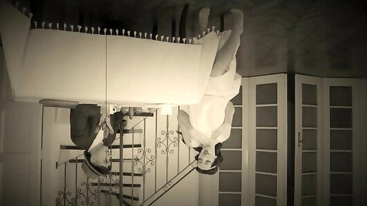 Vintage striptease ended with a rear end fashion and cum-shot in gullet for an stylish brunette