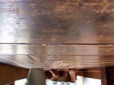 Milf and teenager blow hard-on at the table