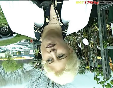 Wild lady from Germany adores stuffing a big lump of corn in her muff