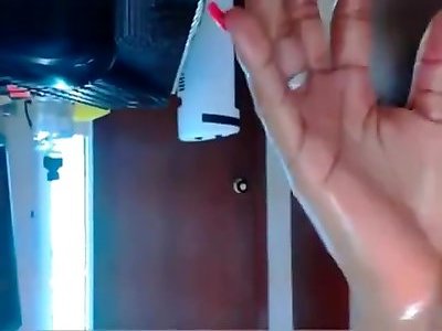 Sizzling black babe dildoing her culo on cam