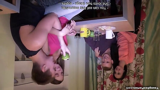 Wild lady from Germany adores stuffing a big lump of corn in her muff
