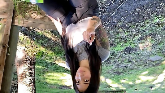 A super busty German brown-haired gets her muff hammered outdoors