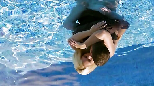 A ash-blonde shoveled the man into the pool so that he became wet, because her slit was already cascading