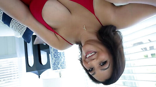 Busty wife Ashlyn Peaks drops her red dress to show her body