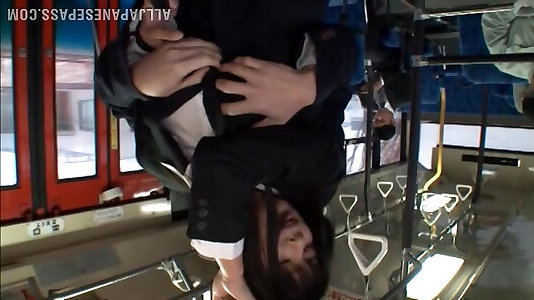 A Asian office gal with big melons gets pulverized in a bus