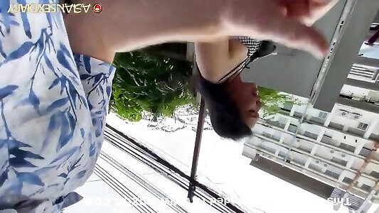 Bimbo Jap teenage Aki Hoshino rides subway in the sailor garment
