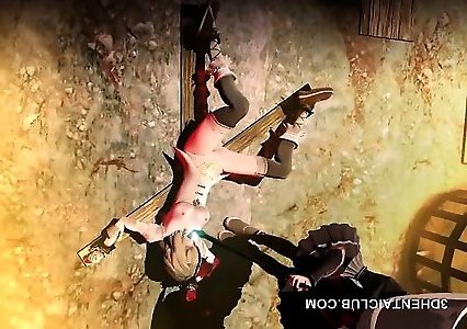 Corded up hentai hump prisoner fuckbox tormented by samurai
