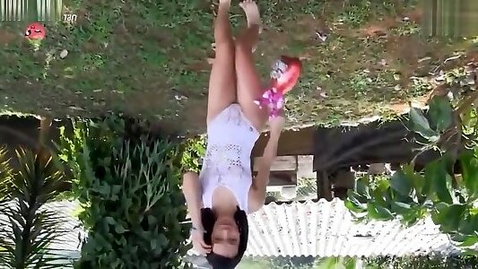 Babe flashing firm milk cans trim pussy retro nylon on picnic