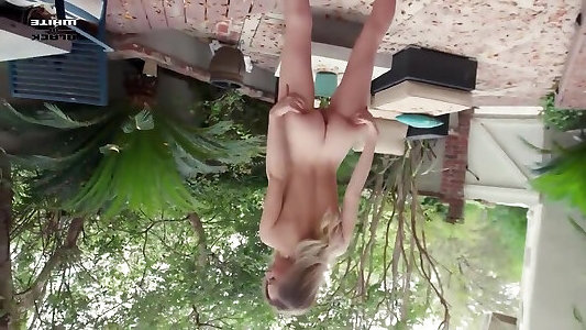 Babe flashing firm milk cans trim pussy retro nylon on picnic