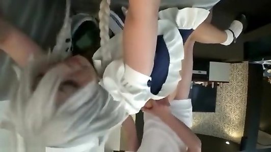 Ultra-kinky granny is deepthroating this mans nads while fapping.