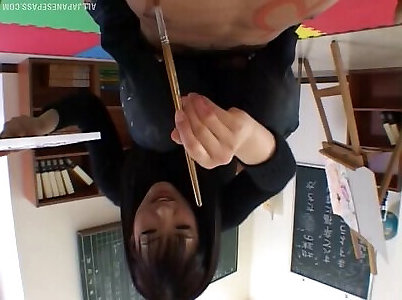 Artistic Asian doll paints his assets then deep-throats his man sausage