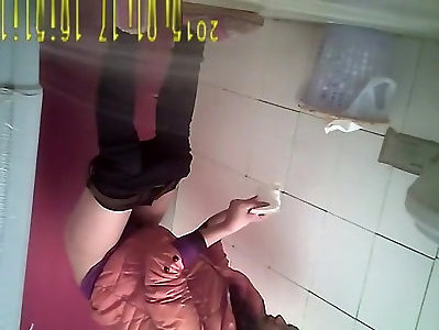 Japanese lady with fur covered poon stagged in wc pissing