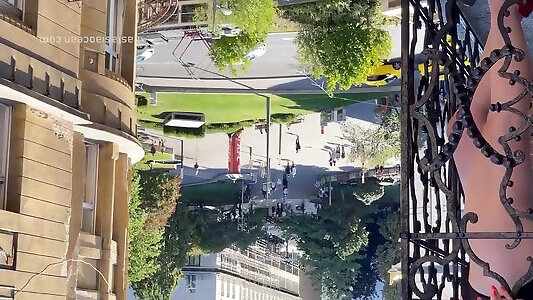 Anastasia Ocean In A Woman Undresses On A Balcony In The City Center. Public Flashing