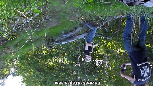 Whorish platinum-blonde head teenager loves doggy fashion hitting while camping