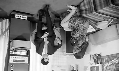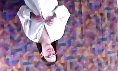 Bashful looking charming gal finally gets nude and enjoys sensual old school mish