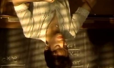 Short haired naughty brunette college professor sucks strenuous cock for cum