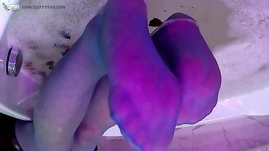 नम और शानदार नीले नायलॉन मालकिन पैर ताना आप ट्रेलर