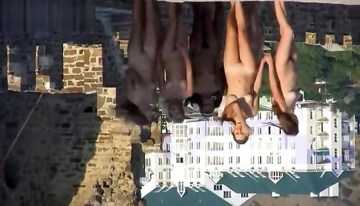 una coppia di escursionisti trova una bionda in una vecchia fortezza e la scopa