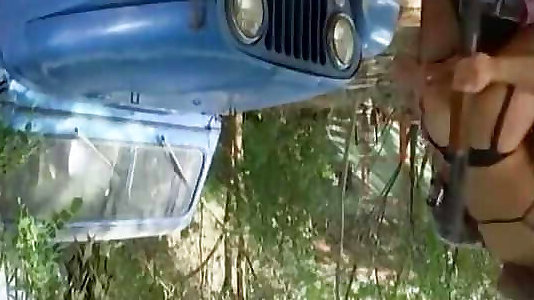 troia bruna in maglia nera calze ottiene il suo culo e la figa dita su jeep